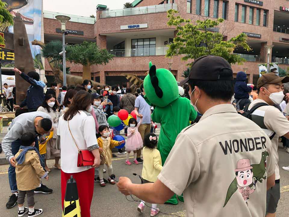 韓國(guó)樂(lè)天百貨反饋,剛安裝好的恐龍吸引了大量的游客駐足觀看拍照