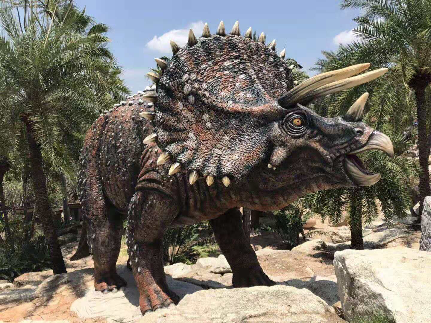4. 野牛龍(愛氏角龍)野牛龍生活在白堊紀(jì)晚期,大約6 米長(zhǎng)、1米高,頭部有三只大角,脖子上有一個(gè)大頸盾,邊緣有齒狀骨質(zhì)突起。它是由山普森(Sampson)在1994年發(fā)現(xiàn)的三個(gè)頭骨化石命名的。像其它角龍一樣,它在獸群中穿行,有牙齒,能咀嚼最硬的植物.