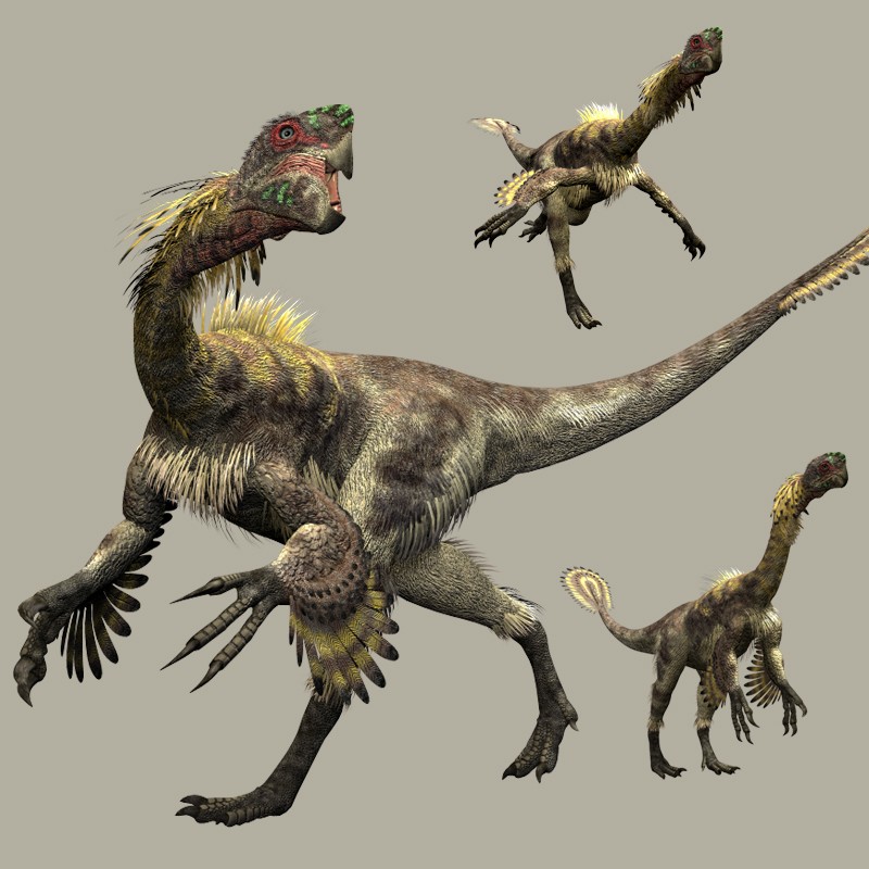 這只世界上所發(fā)現(xiàn)的第一只長(zhǎng)有絨狀細(xì)毛的恐龍,被命名為原始中華龍鳥,是一種介于恐龍與鳥類之間的過(guò)渡型生物,可能代表了鳥類起源和演化的祖先類型。它擁有一個(gè)大頭顱,樣子與雞相近,前肢短小,后肢長(zhǎng)而粗壯;嘴里的銳利牙齒,說(shuō)明它是一只活躍的掠食者。除了長(zhǎng)毛以外,它那條由多達(dá)58節(jié)尾椎骨所組成的特長(zhǎng)尾巴,也是一個(gè)重要的特征。它生活在中國(guó)的白堊紀(jì)早期,以蜥蜴為生。